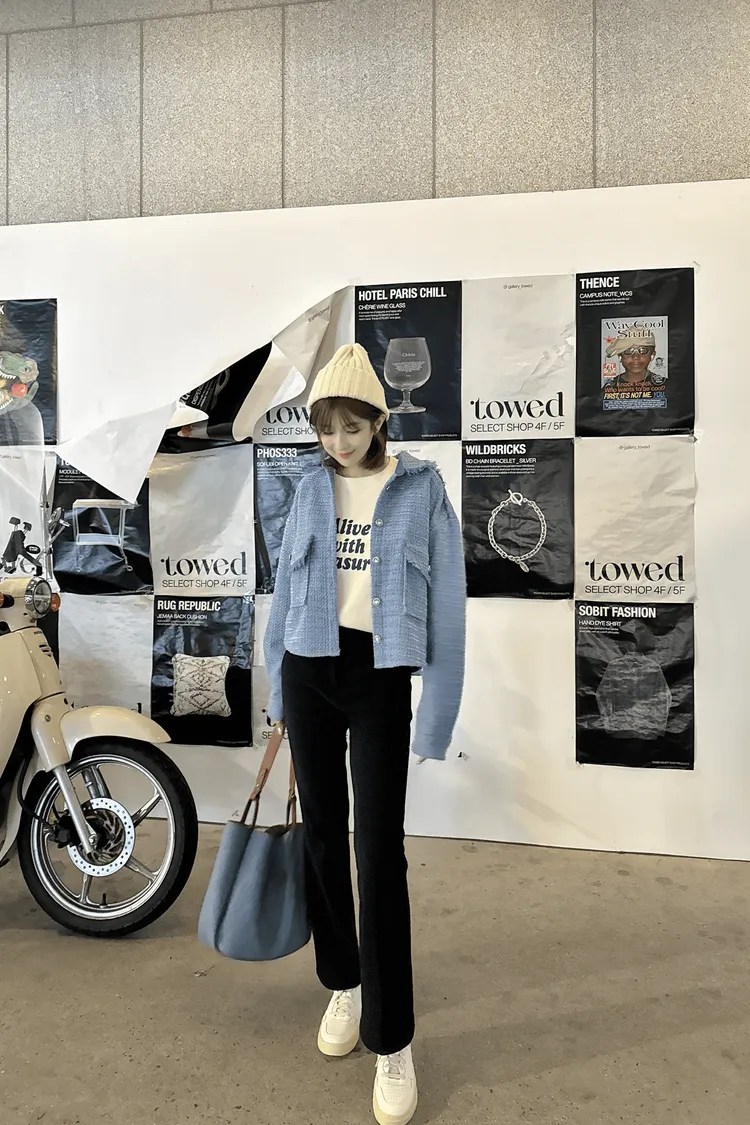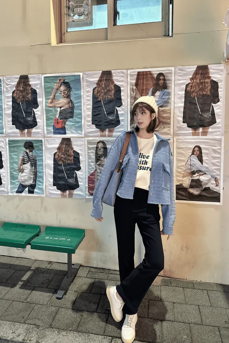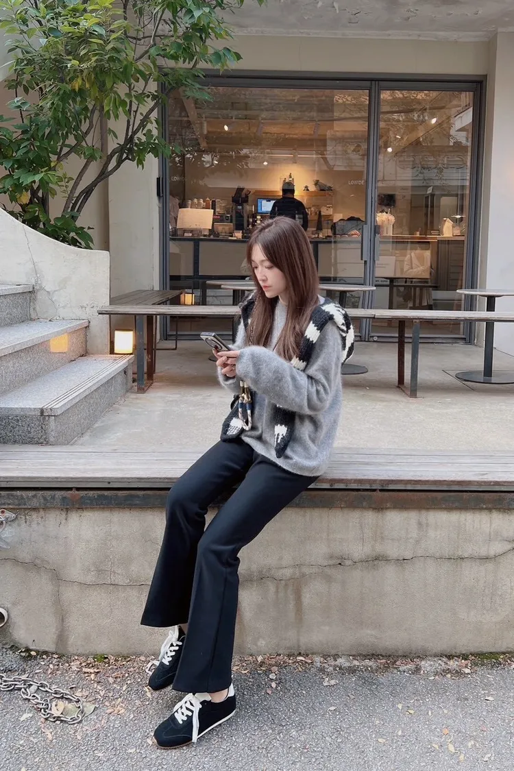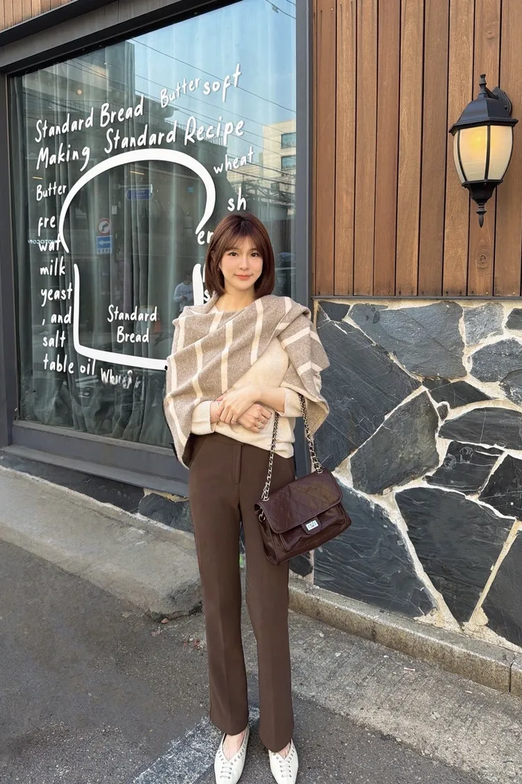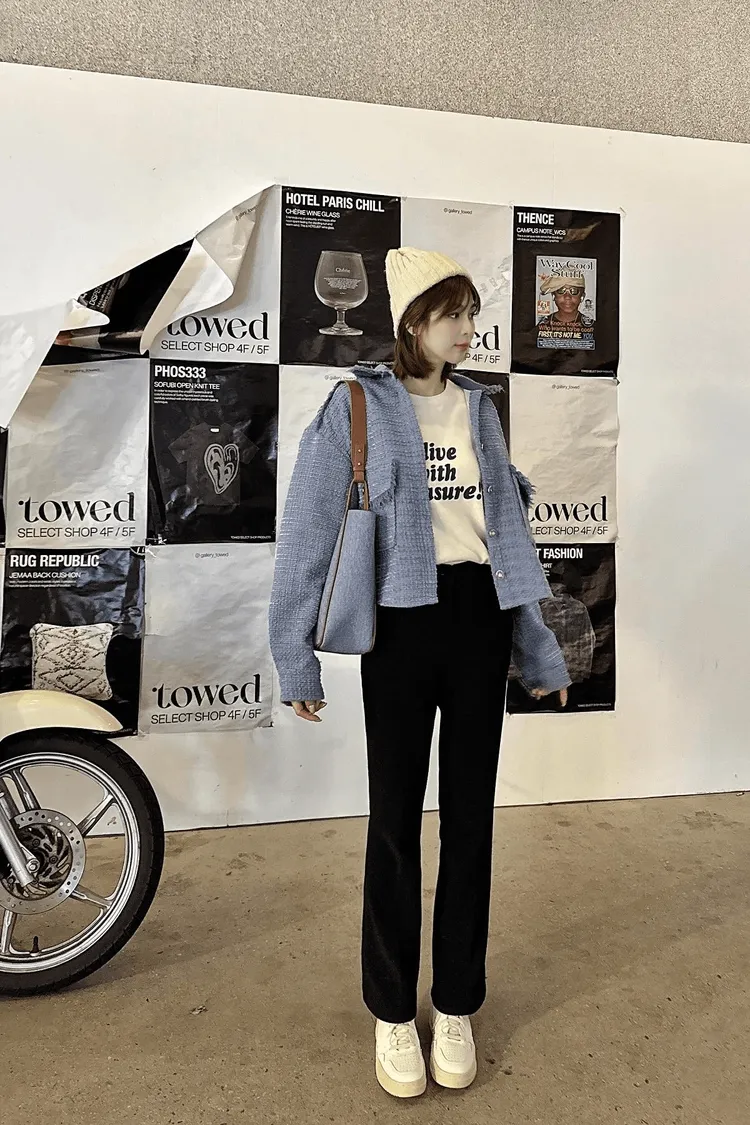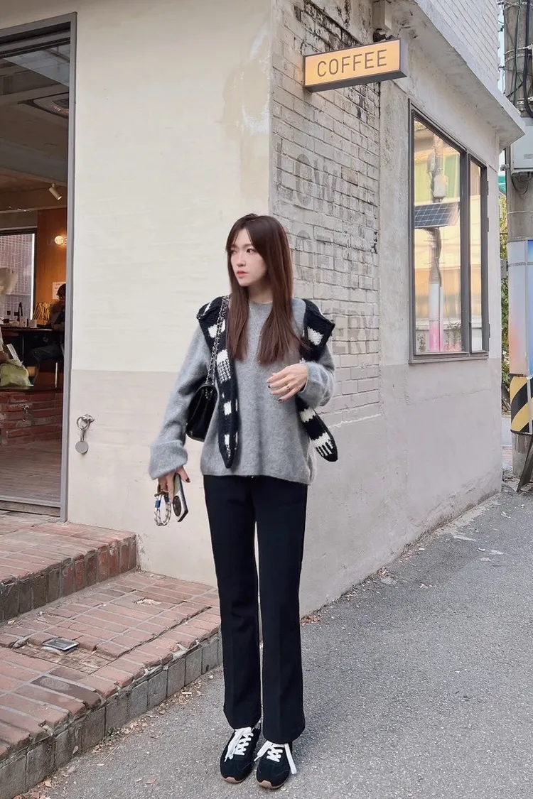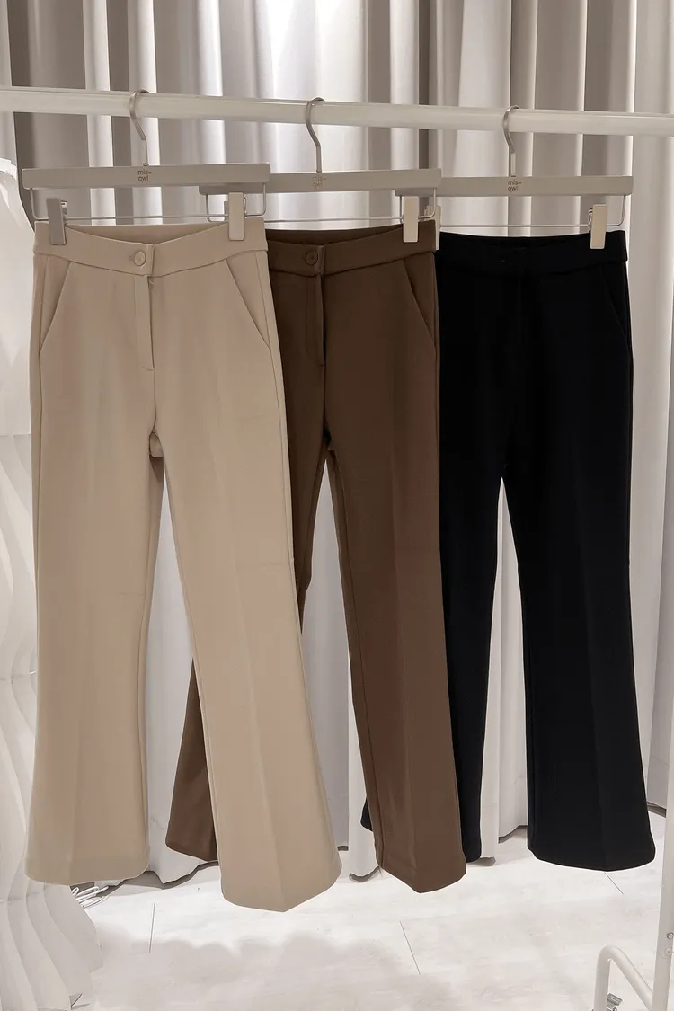 韓-顯瘦內磨毛微喇叭褲(杏/咖/黑)S-XL