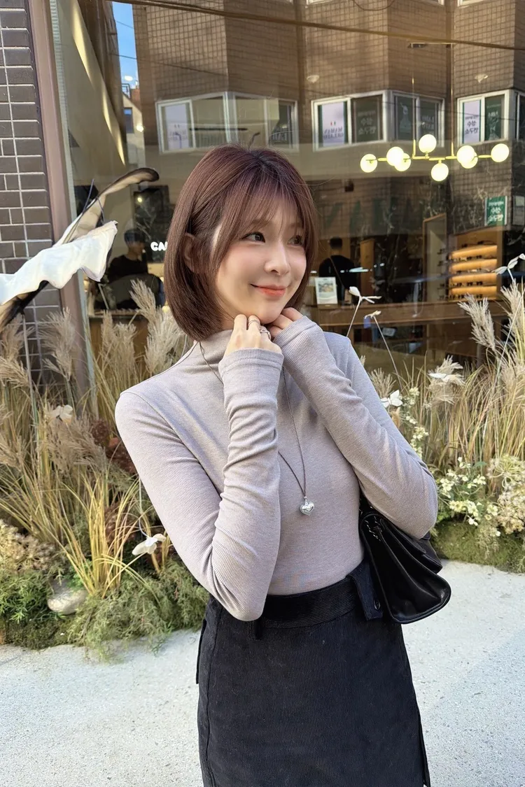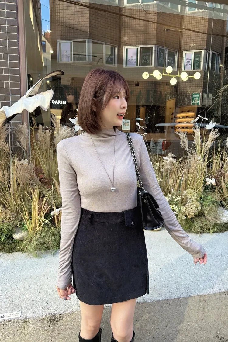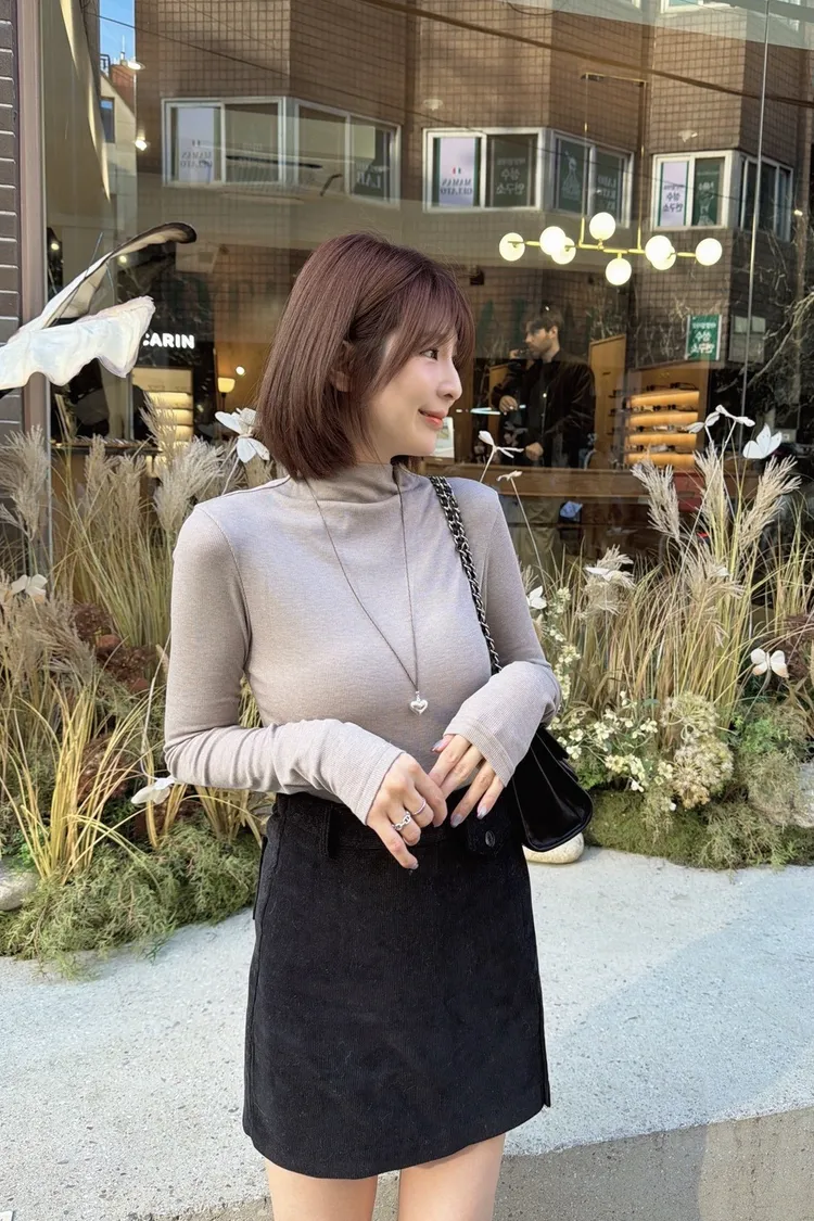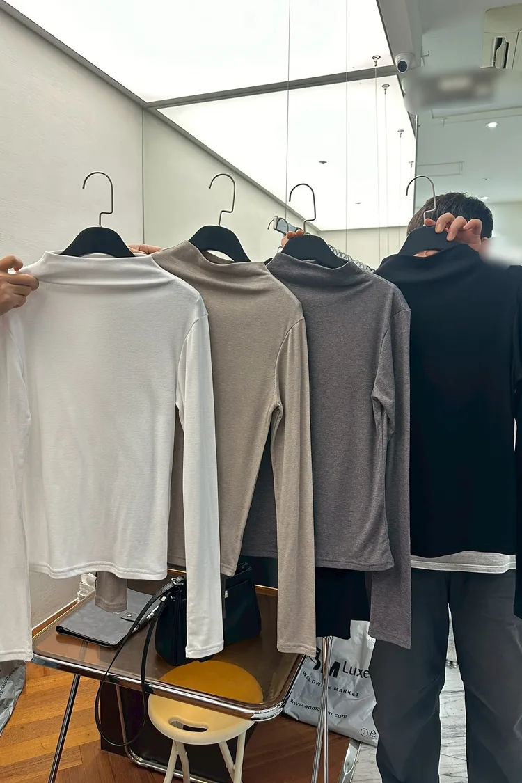 韓-舒服微立領打底衣(白/深杏/灰/黑)