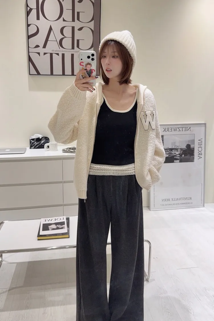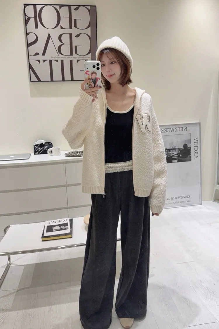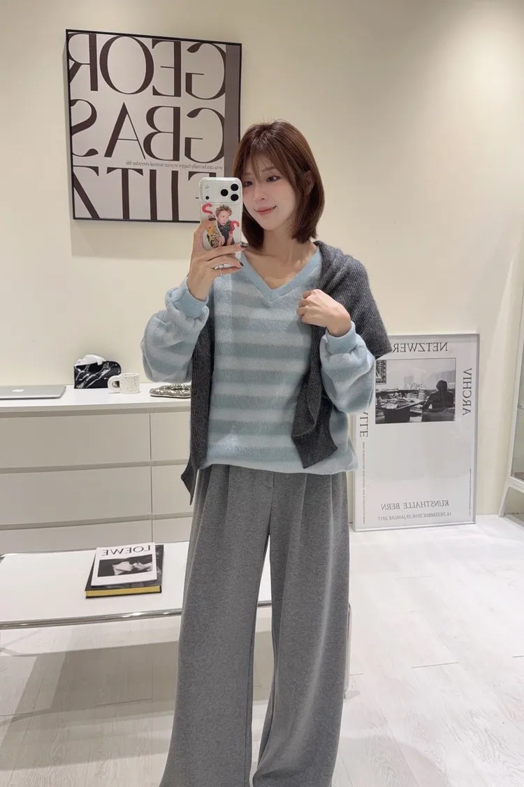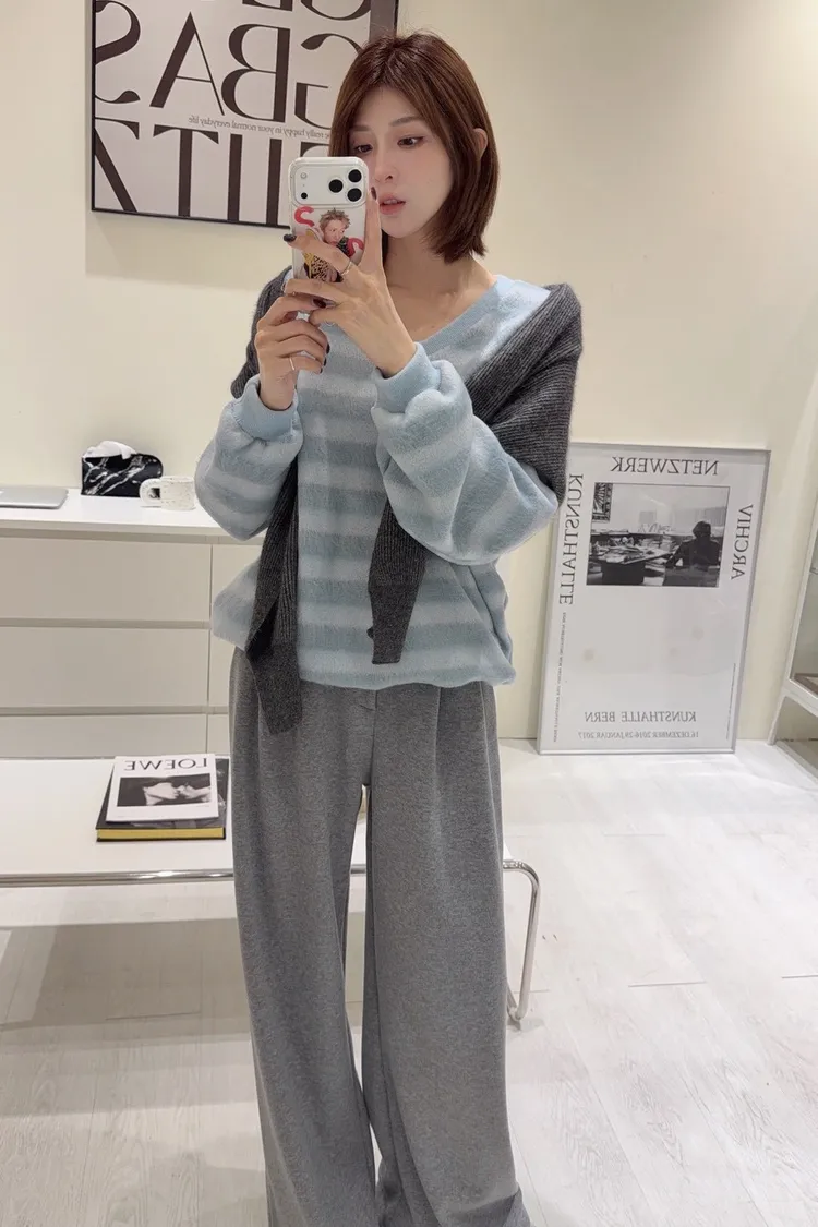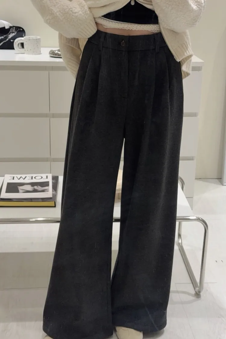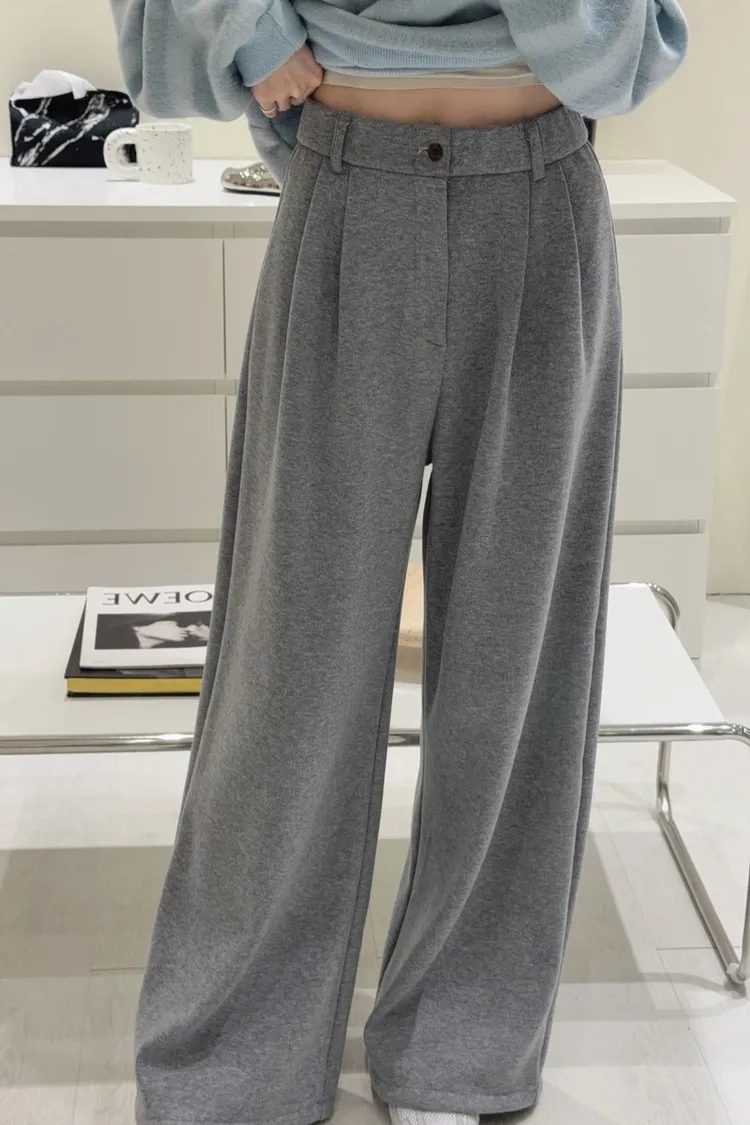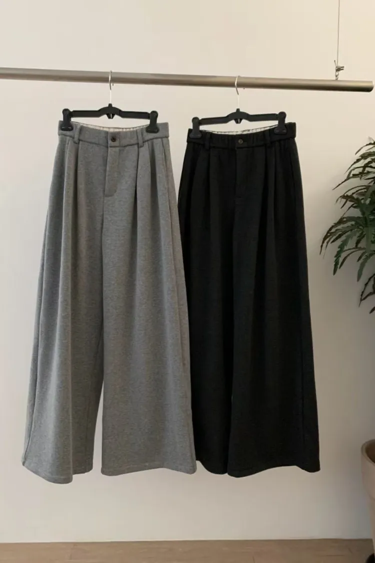 韓-超舒服刷絨休閒西裝寬褲(淺灰/深灰)