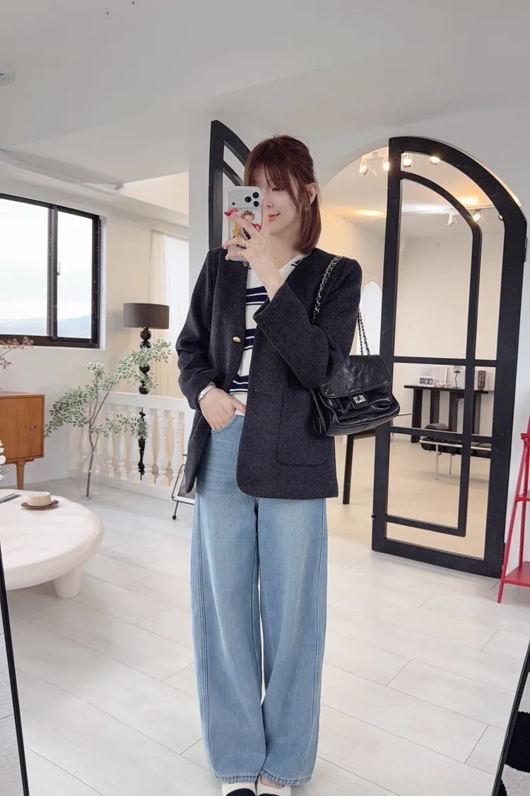 而且沒想到秋冬穿淺色牛仔褲也超好看內