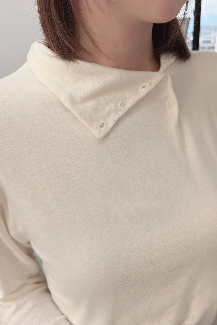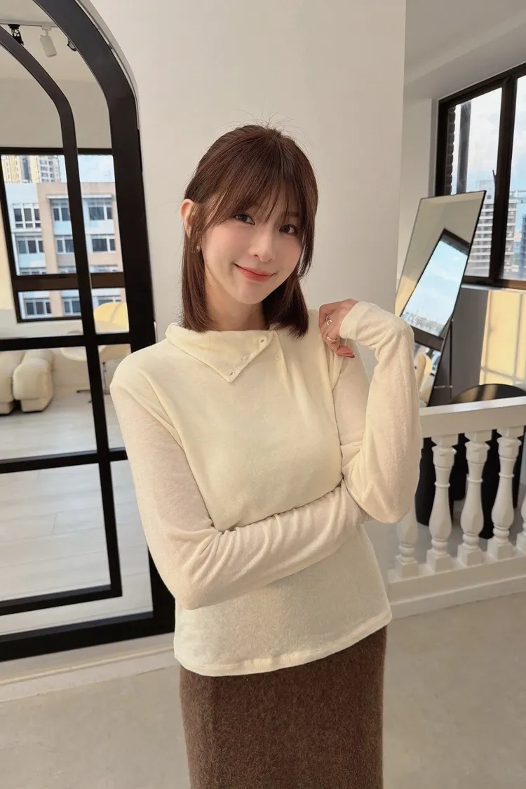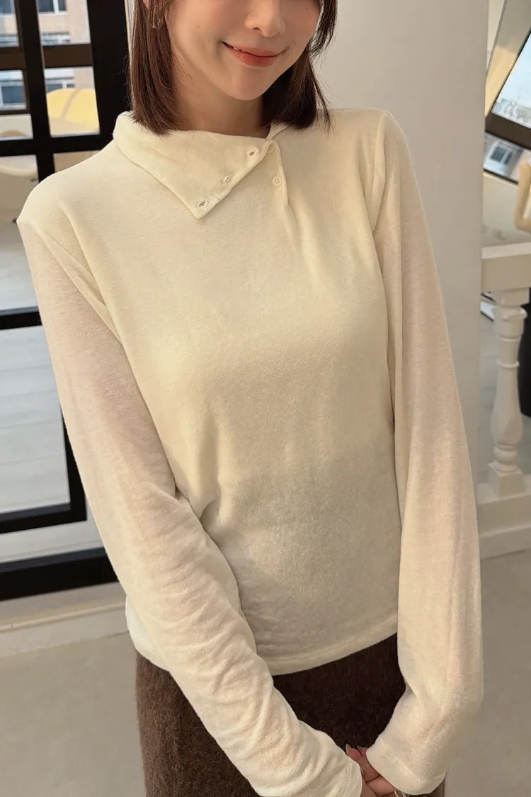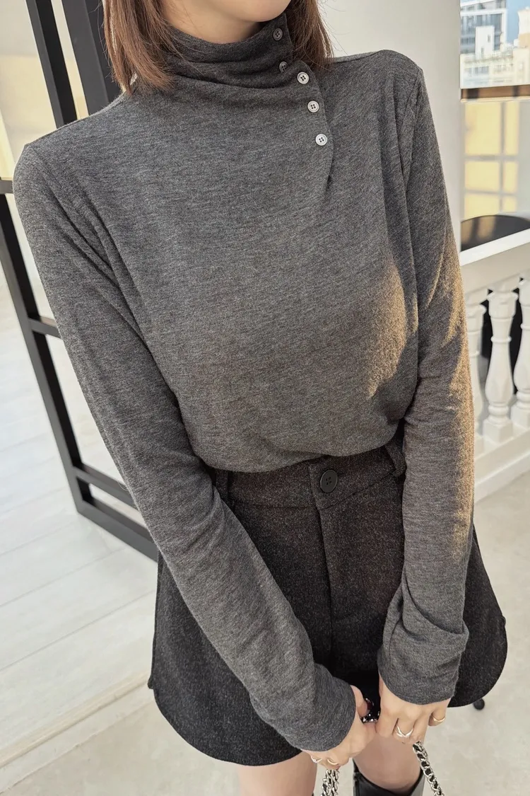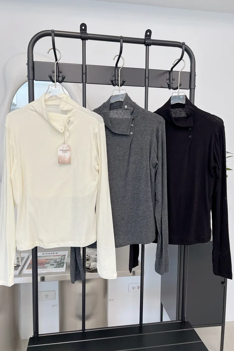 韓-領口鈕扣高領內搭上衣(米白/深灰/黑)