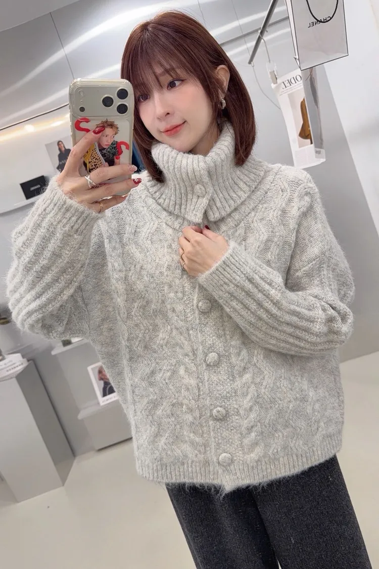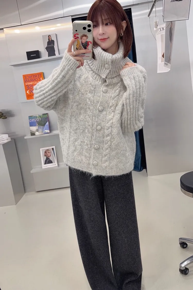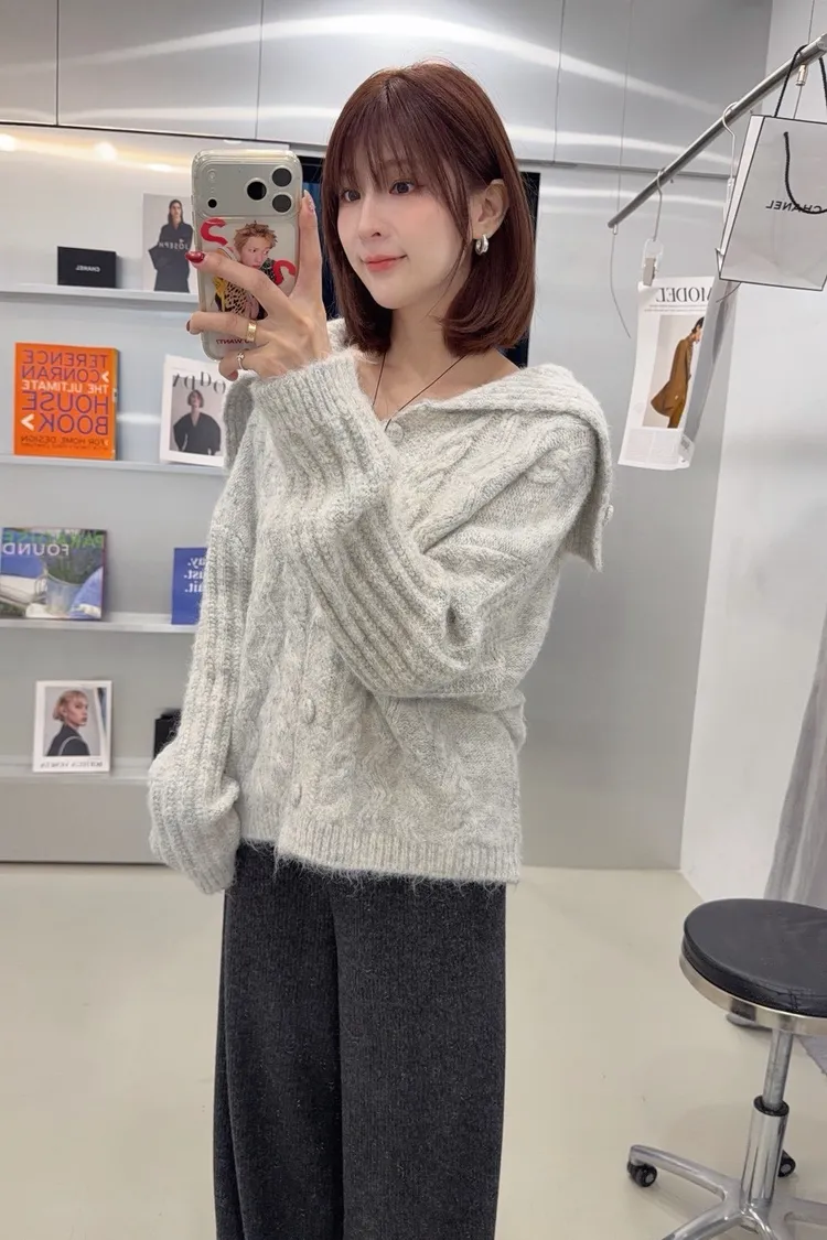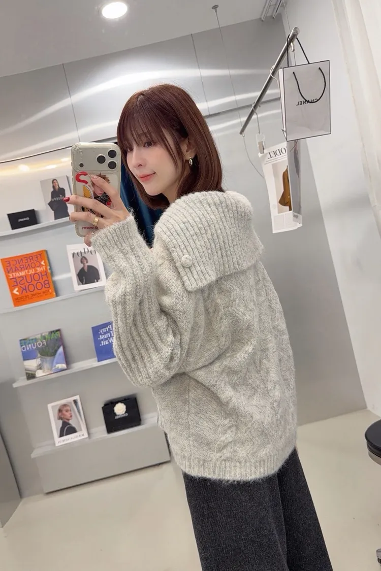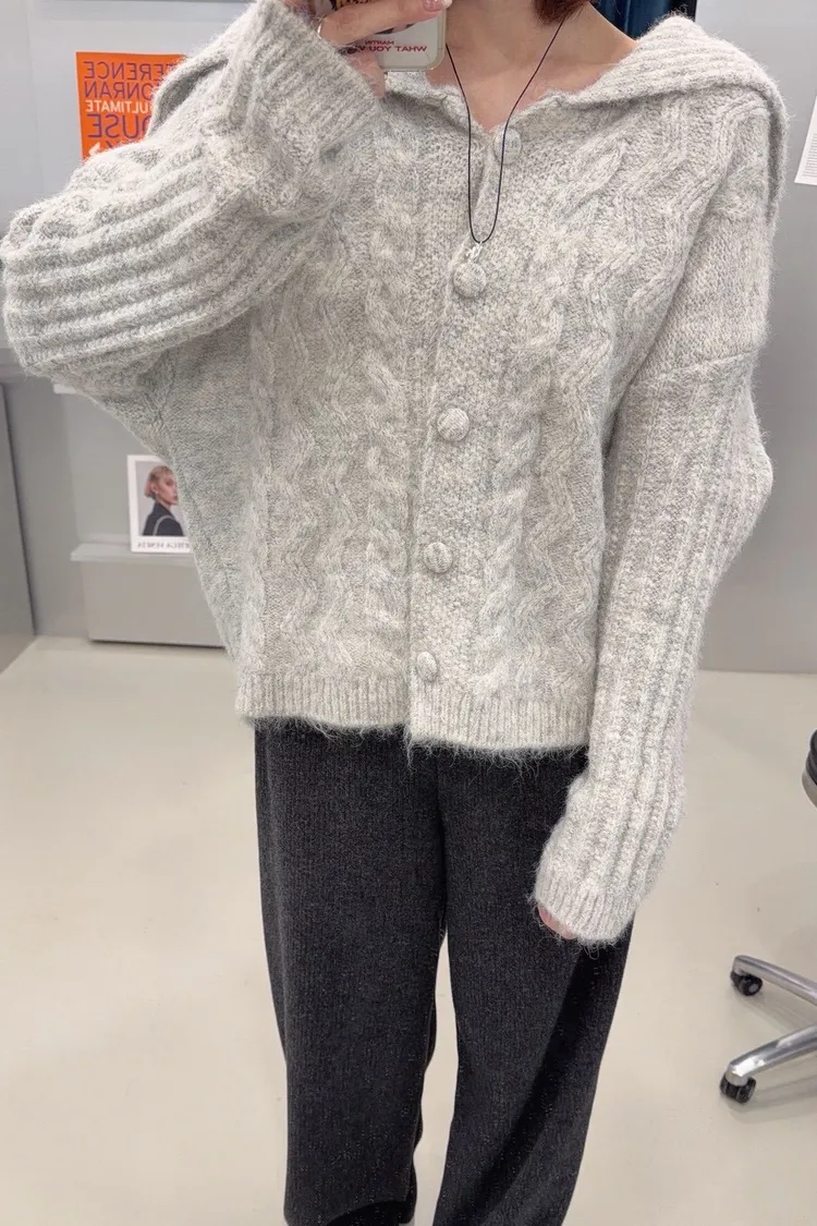 美美的麻花翻領毛衣