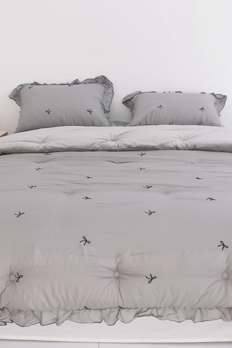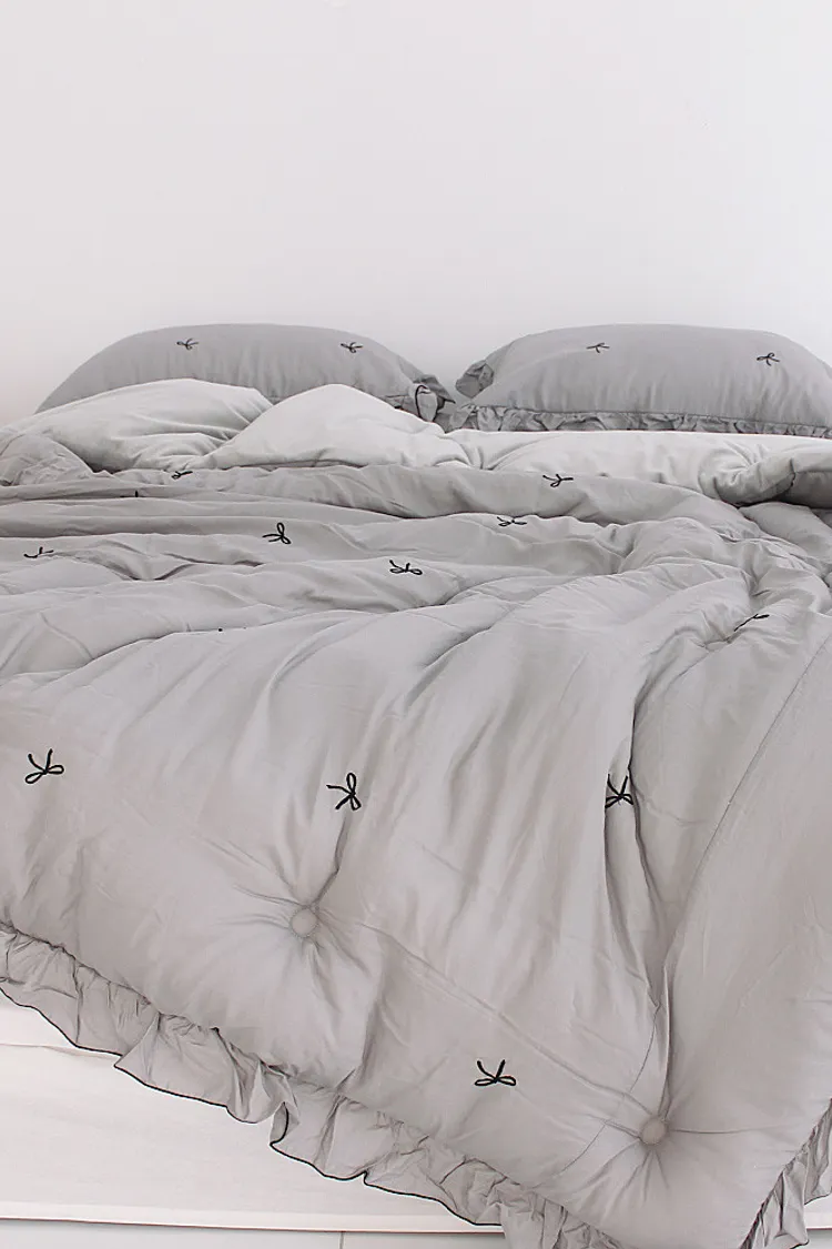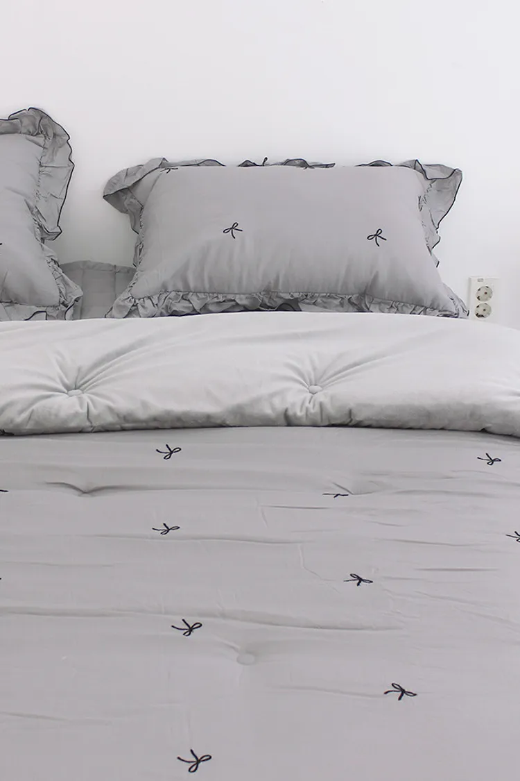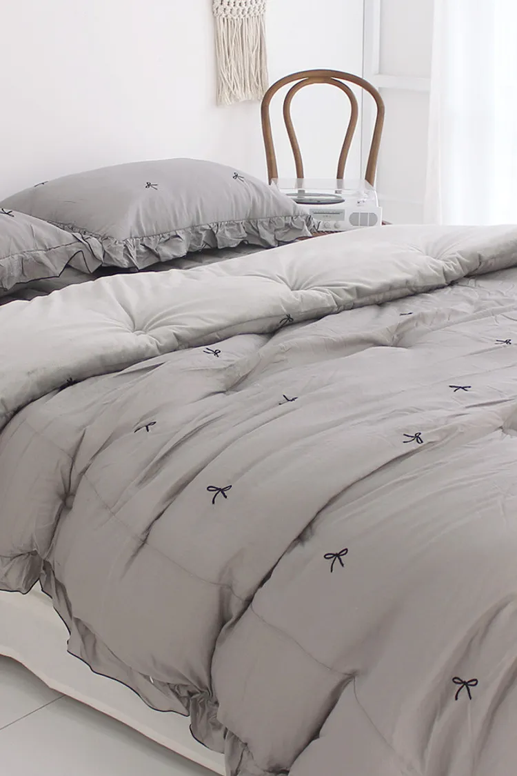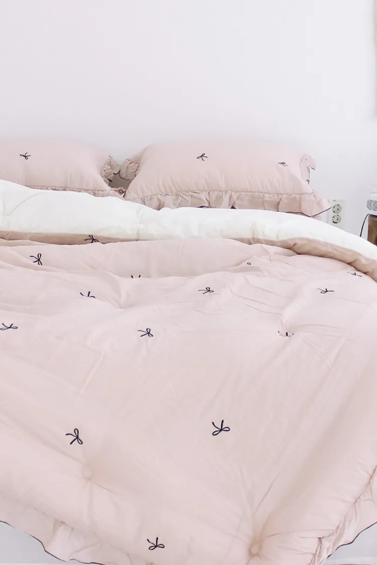 MissOwl自訂款-法式蝴蝶結莫代爾毛絨雙面冬被(粉/灰)