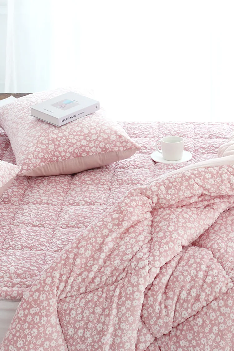 暖暖花雨莫代爾毛絨雙面冬被(粉/灰)
